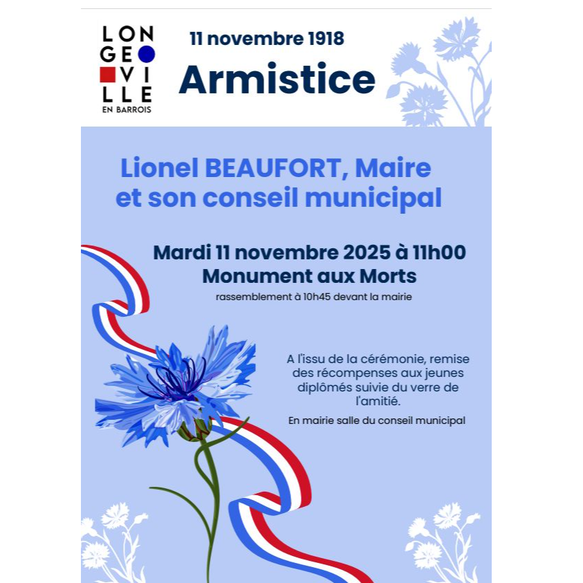 La municipalité vous invite à assister à la cérémonie commémorative du 11 novembre, en hommage aux soldats morts pour la France.